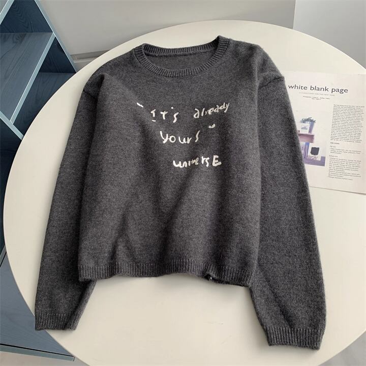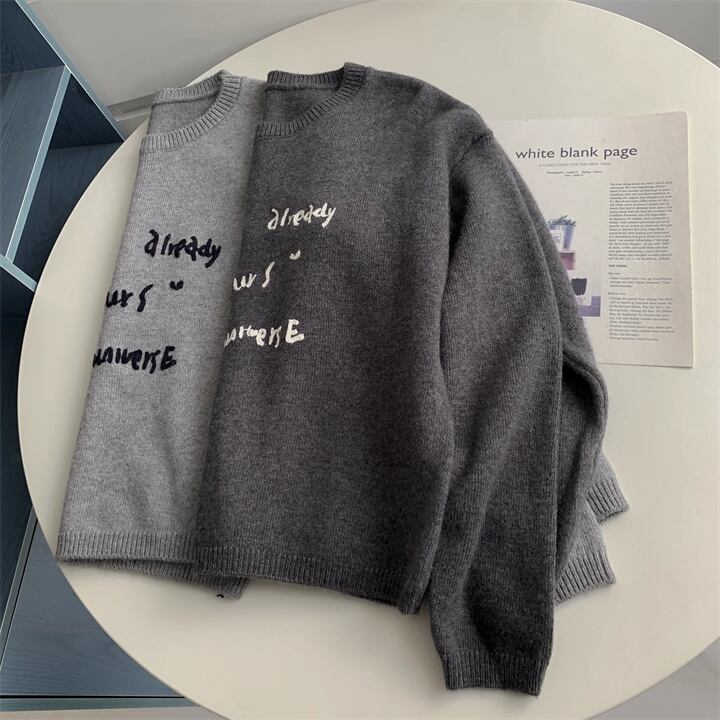 2col. 手書き風ロゴドロップショルダー クルーネック ニット 5385