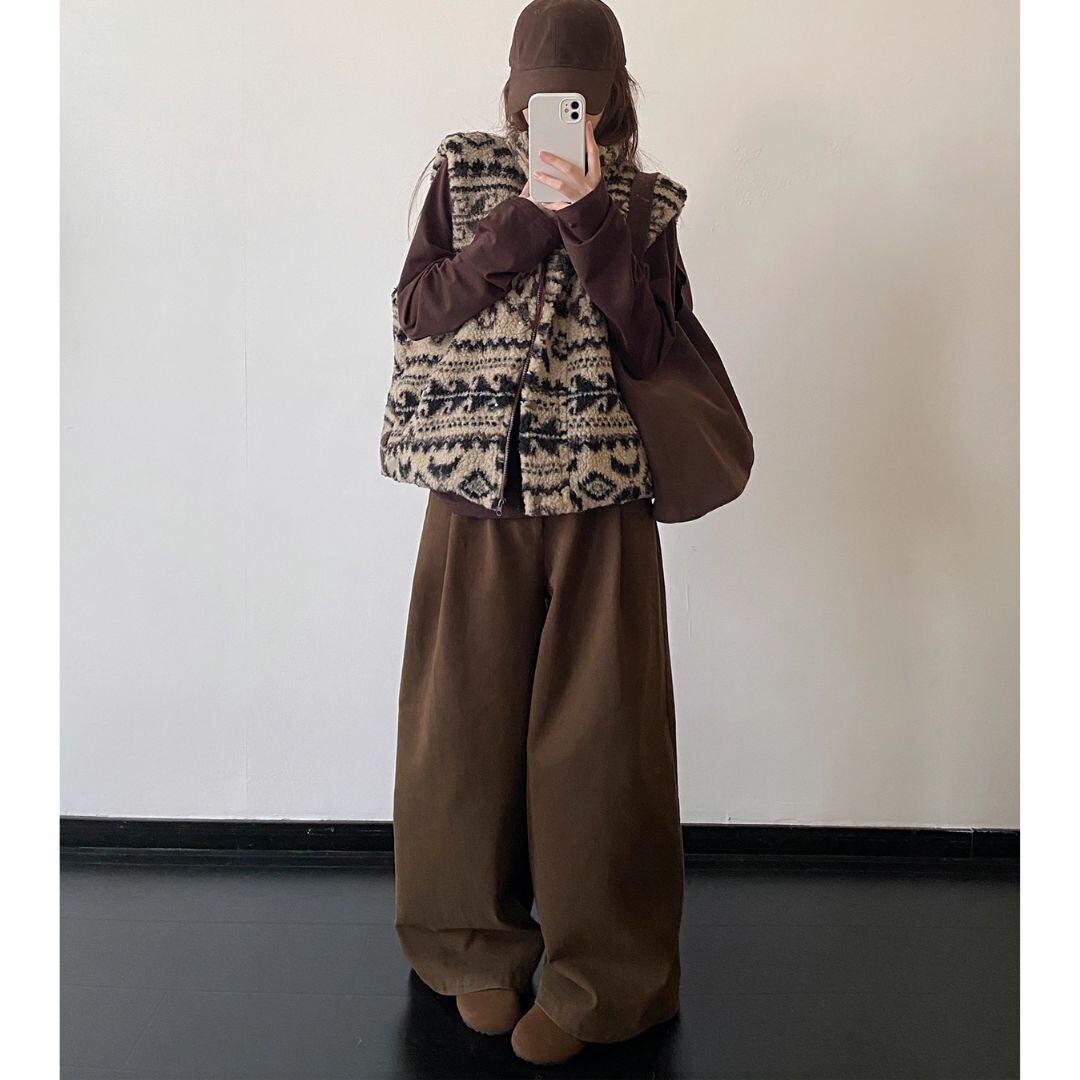 M.Lサイズ ジップアップ ノースリーブ ショート丈 ボア ベスト 5388