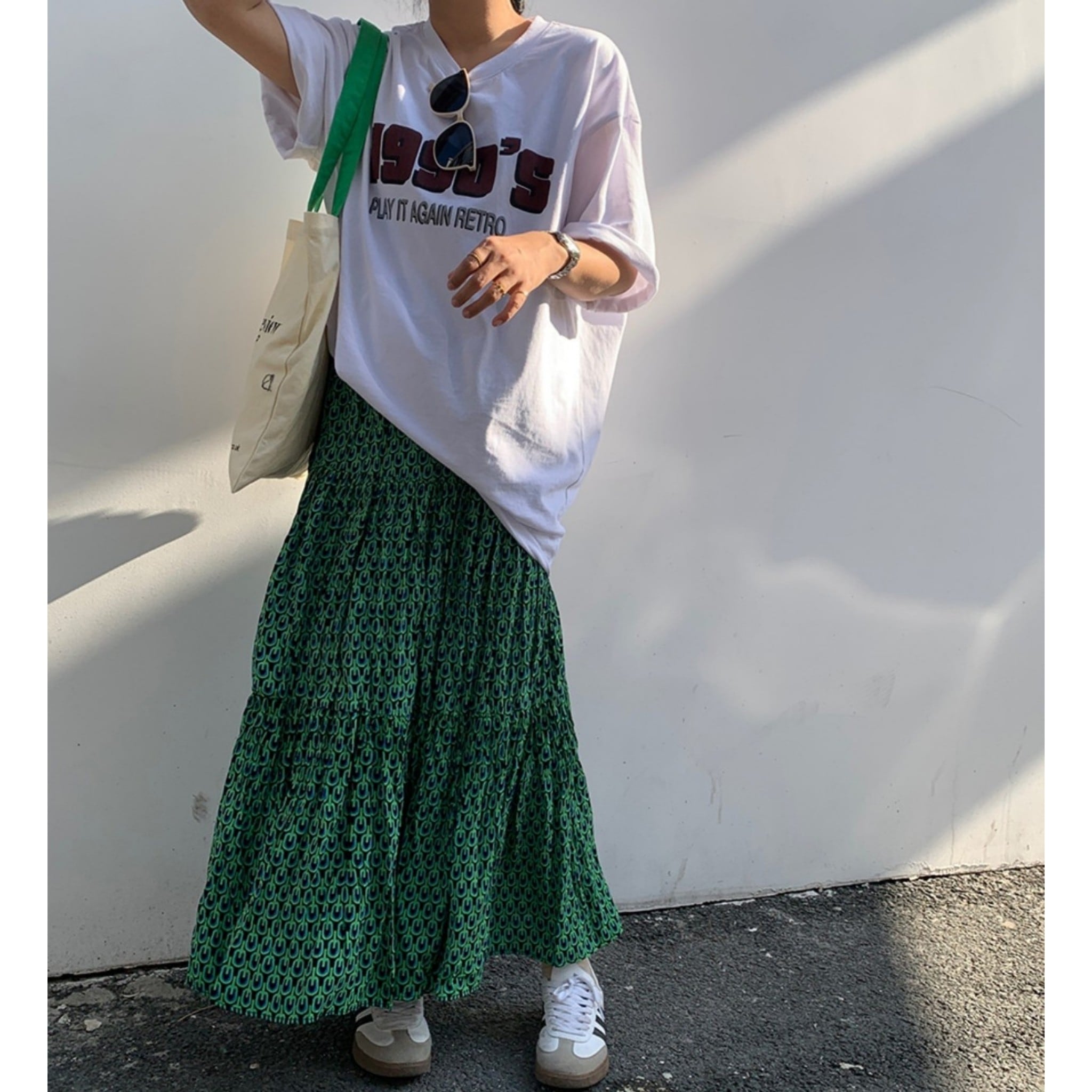 ピーコックグリーンボリュームマキシスカート 0735